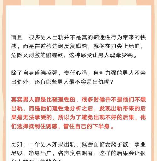 出轨男人是很多女人最不愿意面对的现实,但是如果你想挽回他的心,让他重新爱上你,那么就需要采取正确的方法和步骤。本文将从心理层面出发,为你详细介绍如何挽回出轨男人的心。